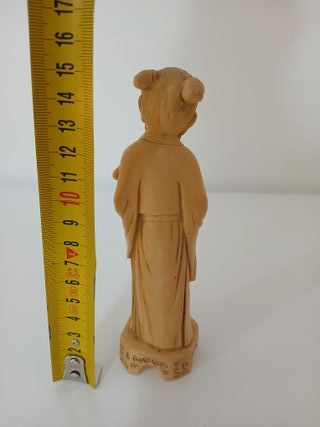Antica statuetta in ceramica Shiwan raffigurante un pescatore. - Realizzata in ceramica. - Dettagli colorati. - Base decorata. Statuetta Cinese Antica Mudman Shiwan Pescatore in Terracotta Vintage 12 cm In buone condizioni come da foto