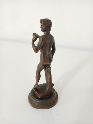Statua vintage raffigurante il David di Michelangelo. - Realizzata in bronzo. - Base circolare decorata. Stauetta Vintage David di Michelangelo in Bronzo 13 cm In buone condizioni come da foto