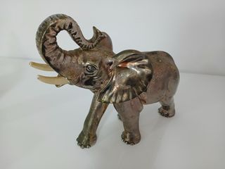 Elegante statua di elefante in lamina d'argento, con un design vintage che aggiunge un tocco di classe. - Materiale: Lamina d'argento - Stile: Vintage Statua Scultura Elefante Vintage in Argento Laminato Portafortuna 30 cm In condizioni come da foto
