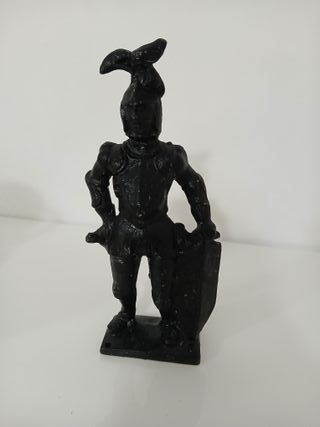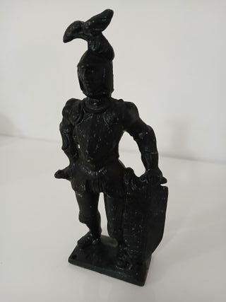 Statuetta antica raffigurante un cavaliere medievale. - Materiale: ghisa. - Design dettagliato con armatura e scudo. Antica Statuetta Statua Cavaliere Medievale in Ghisa Vintage 23 cm In buone condizioni come da foto