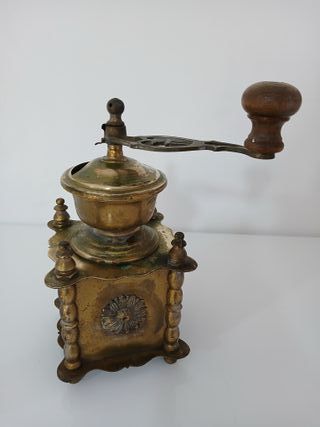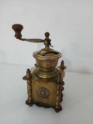 Antico macinacaffè manuale in ottone, con un design che ricorda lo stile turco. - Materiale: Ottone - Tipo: Manuale - Stile: Turco Antico Macinacaffè Manuale in Ottone Stile Turco Ottomano vintage In condizioni come da foto