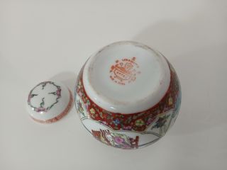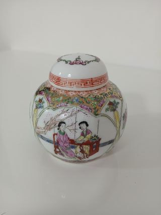 Elegante vaso cinese vintage, decorato a mano con il motivo Lotus Blooms. - Decorazione floreale e scene figurative. - Dettagli in oro. - Coperchio coordinato. Lotus Blooms Vaso Cinese Vintage Decorato a Mano Arte Orientale In buone condizioni come da foto