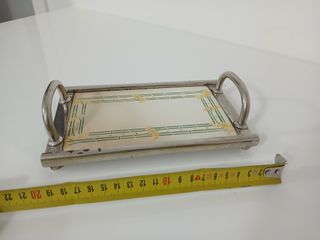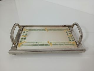 Vassoio Art Nouveau Metallo Cromato Ceramica