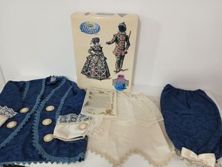 Completo costume per Carnevale di Venezia, marca Royal. - Costume da uomo con giacca blu e pantaloni. - Costume da donna con abito. - Scatola originale inclusa. Costume Carnevale Venezia Vintage Royal Completo Guglielmo D'Orange Taglia M Come da foto, Nuovo mai indossato, polsini ingialliti come da foto da smacchiare