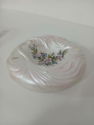 Elegante ciotola svuotatasche vintage in ceramica Berger con finitura iridescente e decoro floreale. - Design con onde delicate e sfumature rosa. - Motivo floreale dipinto a mano al centro. - Firma Berger visibile sull'oggetto. Ciotola Svuotatasche Vintage Berger Ceramica Iridescente Dipinto a Mano Funzionante Vintage In buone condizioni come da foto