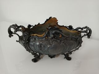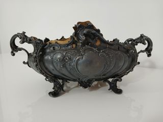 Elegante giardiniera antica in stile Neorococò, perfetta come centrotavola. - Design elaborato con manici. - Base a piedini. - Dettagli floreali e volute. Giardiniera Jardinière Antico Centrotavola Neorococò Metallo Vintage fine 1800 In buone condizioni come da foto