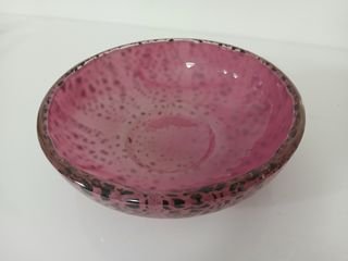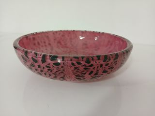 Elegante ciotola svuotatasche in vetro artistico con un motivo maculato. - Design maculato unico. - Materiale in vetro artistico. Ciotola Svuotatasche in Vetro Artistico Maculato Rosa e Nero 20 cm Vintage