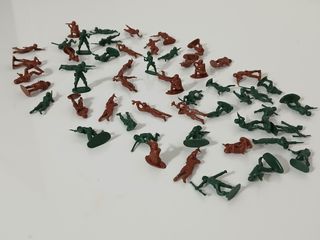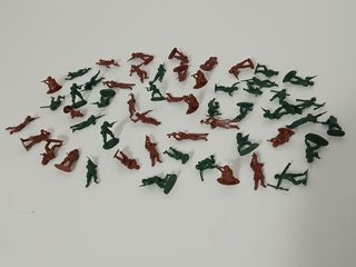 Lotto di piccoli soldatini in plastica, perfetti per collezionisti. - Scala 1:72. - Materiale: plastica. - Colore: misto (marrone e verde). Lotto Soldatini Piccoli in Plastica Vintage 1:72 circa 50 pezzi come da foto In ottime condizioni come da foto