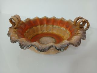 Bellissima ciotola decorativa vintage, perfetta come svuotatasche o centrotavola. Le sue dimensioni sono di circa 25 cm. - Design unico con manici a spirale. - Finitura sfumata nei toni dell'arancio e del beige. - Bordo ondulato e decorato. Ciotola Svuotatasche Vintage Decorativa 25 cm Melamina Manici Ricciolo Anni 60 In buone condizioni come da foto, in manico filato come da foto