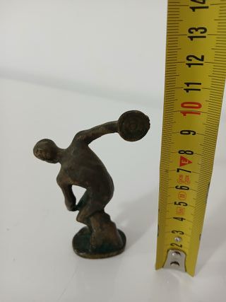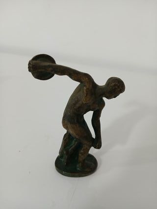 Statuetta in bronzo raffigurante il Discobolo, ispirata all'opera di Mirone. - Materiale: Bronzo - Soggetto: Lanciatore di disco Statuetta Bronzo Discobolo Mirone Lanciatore Disco Giochi Olimpici Vintage in buone condizioni come da foto