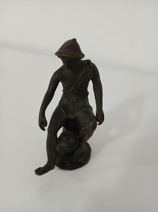 Antica statuetta in bronzo raffigurante un pescatore napoletano. Un pezzo unico per collezionisti. - Materiale: Bronzo - Soggetto: Pescatore Napoletano - Provenienza: Napoli Antica Statuetta Bronzo Pescatore Napoletano Vintage 12 cm in buone condizioni come da foto