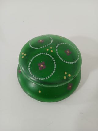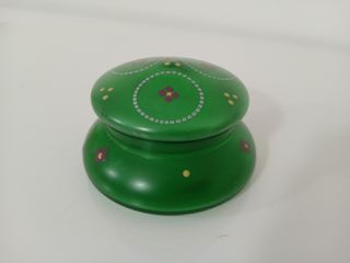 Scatola Rotonda Vetro Verde Boemo Dipinta