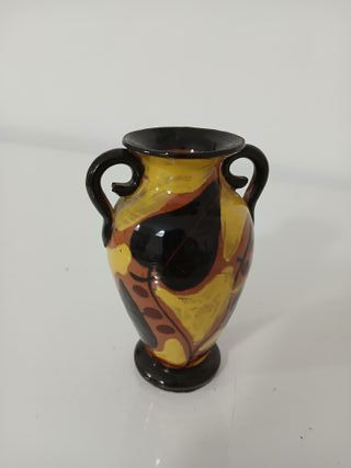 Piccolo vaso in terracotta smaltata, realizzato in Italia. - Design decorato con motivi astratti. - Manici laterali. - Base d'appoggio. Piccolo Vaso Terracotta Smaltata Made in Italy Art Déco Vintage Dipinto a Mano In buone condizioni come da foto