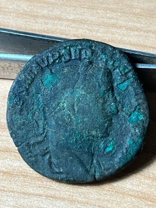 Si accetta anche scambio tipologico simile Moneta romana antica, un Asse di Probo. - Diritto: Busto di Probo. - Rovescio: Figura allegorica.