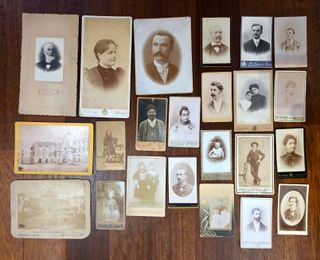 Lotto di 23 fotografie originali italiane, prevalentemente databili tra la fine dell'Ottocento e l'inizio del Novecento. - Fotografie in cartoncino. - Ritratti di persone e scorci di architettura. - Provenienza italiana.