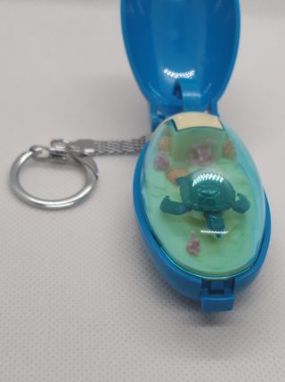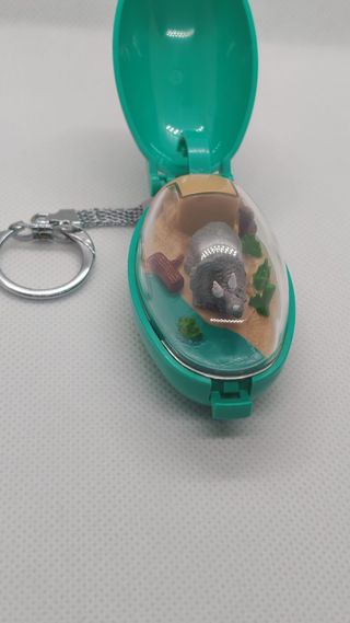 Questo oggetto è un iconico gadget meccanico prodotto dalla casa giapponese Takara (oggi Takara Tomy) nel 1993. Appartenente alla celebre linea Pocket Critters (conosciuta anche come Pocket Pets), rappresenta un pezzo di storia dei giocattoli pre-digitali, anticipando il fenomeno dei Tamagotchi. Design e Struttura: Il dispositivo si presenta con un guscio rigido in plastica azzurra a forma di uovo (clamshell). Sulla parte frontale è presente la scritta serigrafata "MARE PULITO", che lo distingue dalle comuni versioni commerciali internazionali, rendendolo un'edizione rara legata probabilmente a campagne di sensibilizzazione