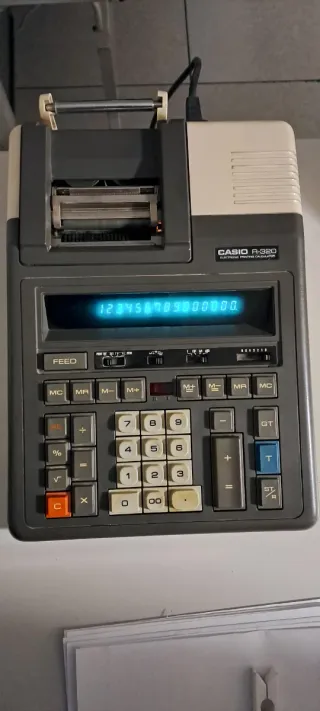 Calcolatrice elettronica da banco Casio R-320. 15 cifre. - Display LCD. - Funzione di stampa. - Tasti per memoria (M-, M+, MR, MC). - Tasto GT (Grand Total). - Tasto T (Tax). E tante altre funzioni. Viene venduta cosi come in foto senza scatola e manuale di istruzioni, oggetto datato ma perfettamente funzionante ed in buono stato.