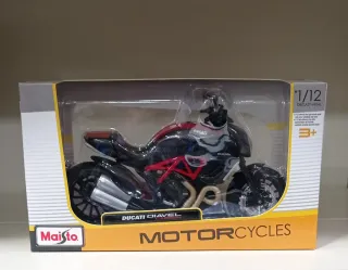 Modellino in scala 1:12 della Ducati Diavel Carbon di Maisto. - Dettagli fedeli all'originale. - Realizzato in metallo pressofuso con parti in plastica (die-cast metal). - Scala 1/12. Nuovo nella propria confezione originale così come da foto
