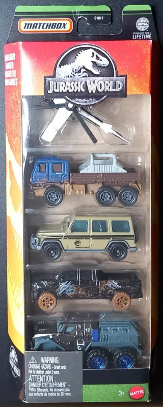 Set di 5 veicoli Matchbox a tema Jurassic World. - Veicoli in metallo. - Confezione originale e sigillata