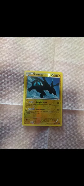 Carta Pokémon di Zekrom. - Base - HP 130 - Attacco: Artiglio Mach 50 - Attacco: Incrofuoco 80+