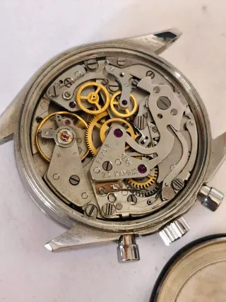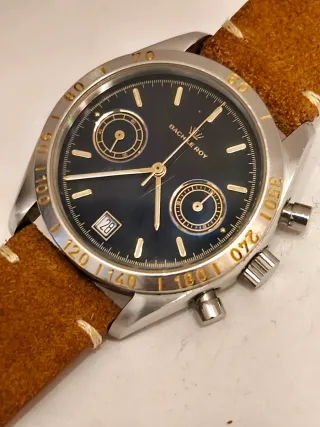 Elegante orologio da polso Bach le Roy con quadrante blu e cinturino in pelle marrone. Funzionante cassa in acciaio tasti a pompa - Cronografo - Datario - Lunetta tachimetrica - Cinturino in pelle scamosciata
