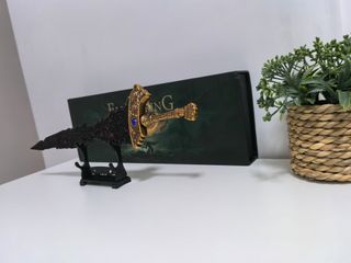 Replica della Lama di Malenia dal videogioco Elden Ring. Un pezzo da collezione per gli appassionati. - Lama curva con incisioni runiche. - Supporto espositivo in plastica incluso nella confezione - Cofanetto tematizzato con chiusura magnetica e velluto rosso Questo cimelio non e' un semplice gadget, ma una vera e propria replica per collezionisti e appassionati di Elden ring Le condizioni sono perfette Spedisco velocemente e con imballaggio solido