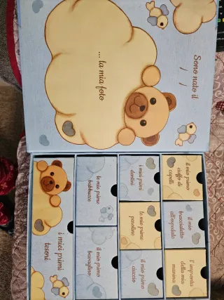 Album I miei primi tesori Thun, perfetto per conservare i ricordi più preziosi. - Copertina azzurra con orsetto e mongolfiera. - Design a tema infantile.