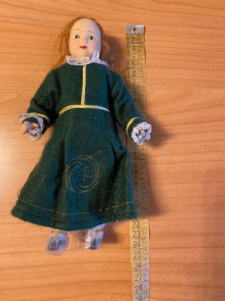 Bambola in porcellana con un grazioso vestito verde. - Dettagli in pizzo bianco sui polsini e sul colletto. - Nastrino dorato in vita e lungo il bordo del vestito.