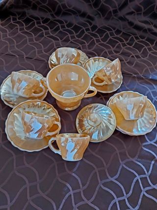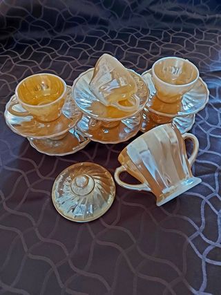 Servizio di 6 tazzine con piattini + zuccheriera x caffè ,vintage Fire-King made in U.S.A