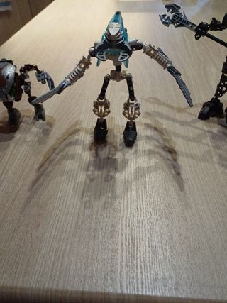 lotto 3 bionicle completi, senza scatola, istruzioni presenti solo per il verde. il verde presenta una crepa su un braccio