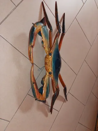 Questo granchio è realizzato in legno, fatto a mano perfetto per decorare. Lunghezza 65 cm completamente smontabile - Materiale: legno - Colore: blu, arancione e marrone