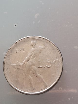 26° moneta 50 lire dio vulcano prima tiratura originale della repubblica italiana circolata ma in perfette condizioni della collezione privata errori : sul lato del dio vulcano : - leggero strabordamento sulla pietra del dio vulcano coniazione : 1977