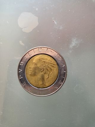 4° moneta 500 lire bimetalliche originale repubblica italiana circolata ma ben conservata della collezione privata nessun errore coniazione : 1990