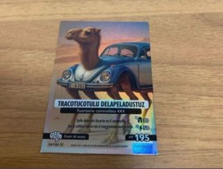 Carta Brainrot prima serie numero 34. - Nome: Tracotucotulu Delapeladu. - Fuoriserie cammellata 4X4. - Punti: 195. - Numero: 34/150.