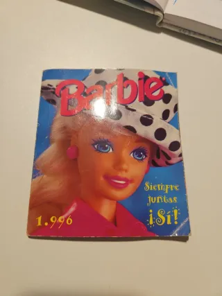 Catalogo di Barbie dell'anno 1996. Presenta l'iconica bambola con un design allegro e colorato. - Copertina con Barbie e cappello a pois. - Include l'anno 1.996 in basso a sinistra. - Testo Sempre insieme! Sì! in basso a destra.