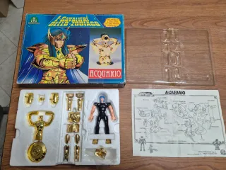 Figura vintage dei Cavalieri dello Zodiaco di Acuario di Saint Seiya. Ideale per collezionisti. - Figura d'azione. - Armatura dorata dettagliata. - Include pezzi aggiuntivi.