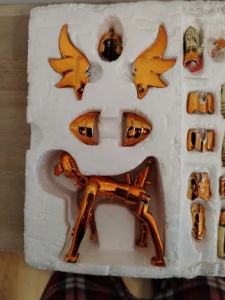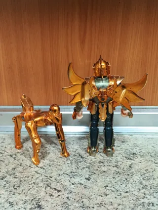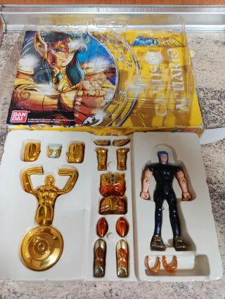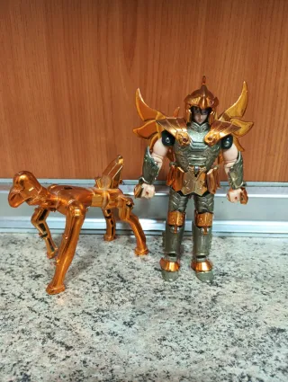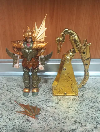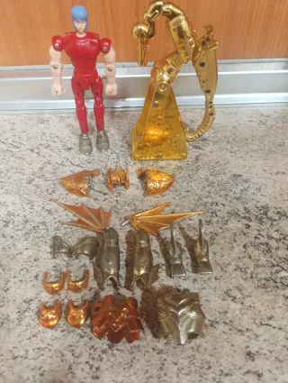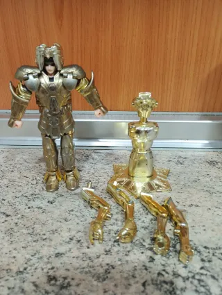 Figura d'azione dei Cavalieri dello Zodiaco (Saint Seiya) del 1988. Mancano 2 pezzi dell'armatura. Include armatura dorata, figura d'azione e pezzi intercambiabili.
