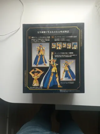 Figura d'azione di Camus dell'Acquario della linea Myth Cloth EX dei Cavalieri dello Zodiaco. Dettaglio del personaggio. Include armatura dell'Acquario e accessori.