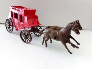 Modellino di Carrozza di Davy Crockett prodotto da Morestone su licenza Walt Disney nel 1956 Riverniciata Mancano i personaggi Misura 16 cm. cavalli compresi