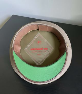 Tesa di cappello da ufficiale dell'Esercito Italiano. - Colore beige. - Fascia in tessuto marrone. - Visiera in vernice lucida. - Taglia 58 - Nuovo mai indossato