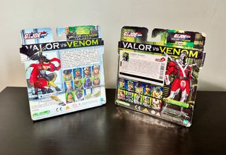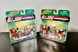 Coppia Raro set da collezione Gi Joe Valor Vs Venom Hasbro anno 2004 sigillati anche se presentano dei segni del tempo (le scatole hanno quasi 20 anni) e naturalmente i personaggi sono perfetti e completi di armi e accessori. Articoli x collezionisti prezzo x 2 Set (non spezzo il lotto), vendita unica!!