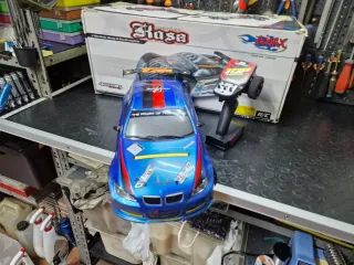 Modellino di auto radiocomandata a scoppio. - Motore a scoppio. - Carrozzeria nera con numero 28. - Ruote tassellate.