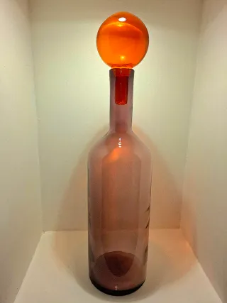 Elegante bottiglia in vetro di Polspotten, perfetta per aggiungere un tocco di colore alla tua casa - Design moderno e raffinato. - Vetro colorato lilla. - Tappo a sfera arancione Misura 53 cm.