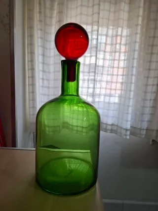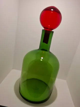 Elegante vaso in vetro di Polspotten, perfetto per aggiungere un tocco di colore alla tua casa. La forma sinuosa e il tappo sferico rosso lo rendono un pezzo unico. - Materiale: Vetro - Colore: Verde - Tappo: Sfera rossa Misura 43 cm.