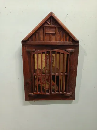 Tavernacolo in legno di pino con finitura color noce. - Materiale: Legno di pino. - Colore: Noce. Con madonna stampa sup legno