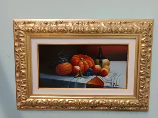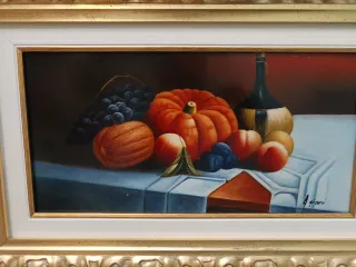 Dipinto olio natura morta zucca e uva