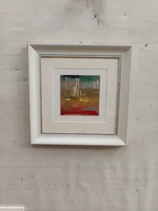 Opera d'arte astratta su cartoncino, incorniciata. - Tecnica mista con colori vivaci. - Cornice bianca moderna.