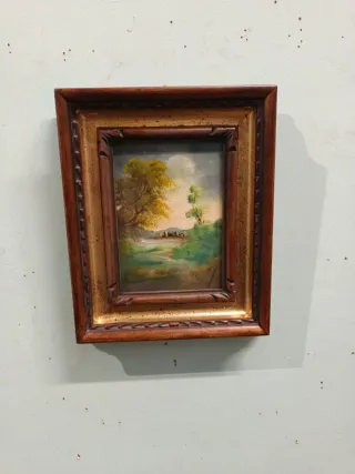 Dipinto olio su tavola con cornice radica