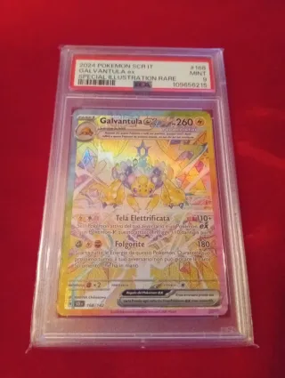 Carta Pokémon Galvantula ex, Special Illustration Rare, con grading PSA 9. - Edizione: 2024 Pokemon SCR IT - Numero carta: #168 - Valutazione: MINT 9 - Codice PSA: 109656215