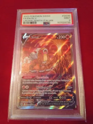 Carta Pokémon Entei V, certificada por PSA con una puntuación de 9 (Mint). - Edición: Crown Zenith - Italiano - Año: 2023 - Código: #GG36